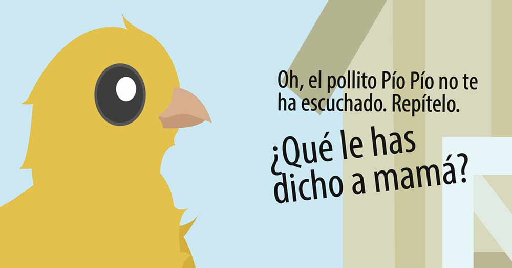 El pollito Pio Pio no te ha oído. Repítelo ¿qué le has dicho a mamá?